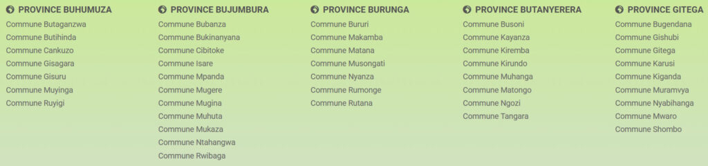 - La province de Burunga comprend Bururi, Makamba, Rumonge et Rutana.